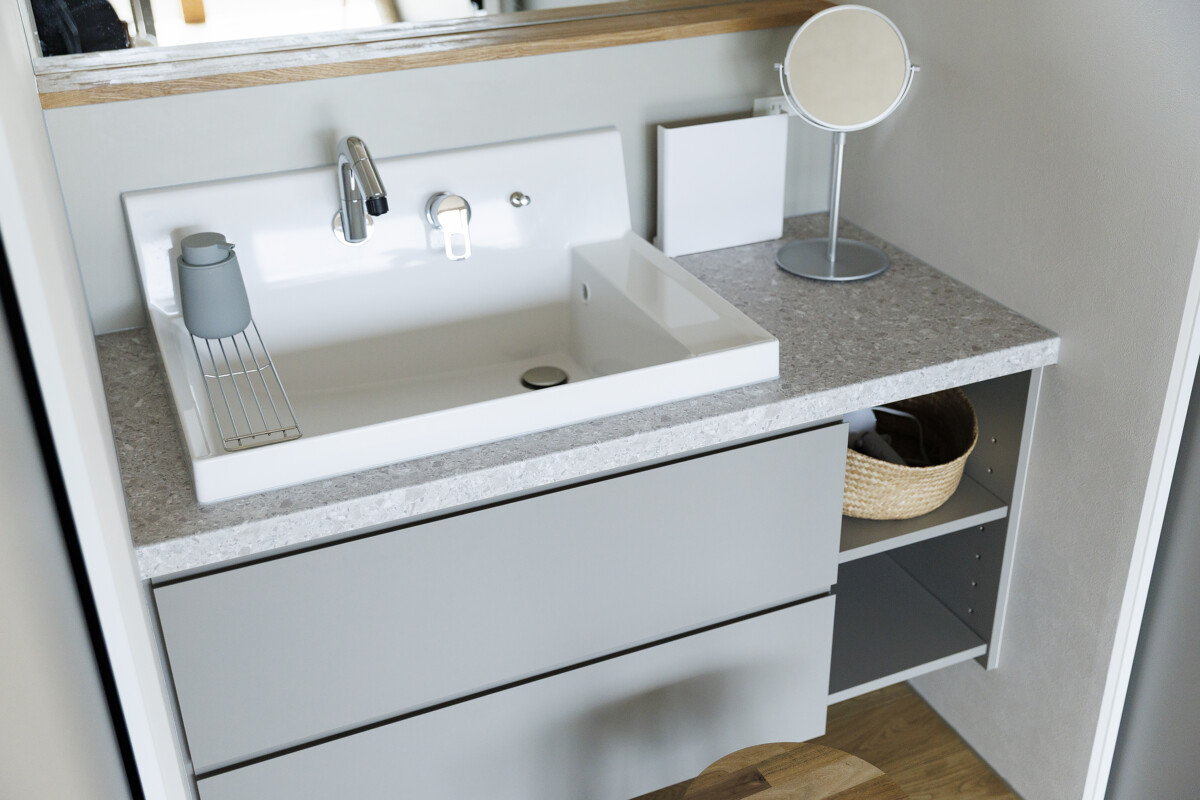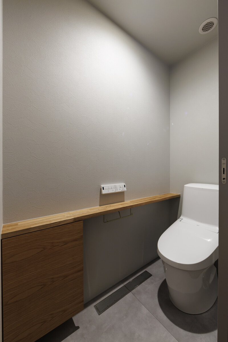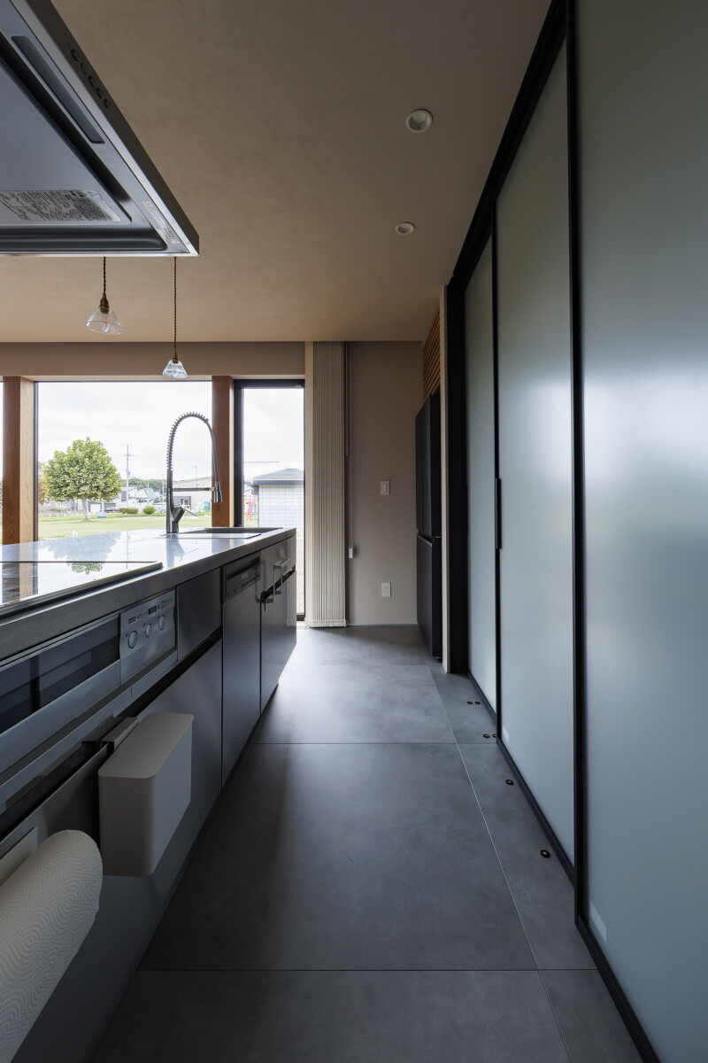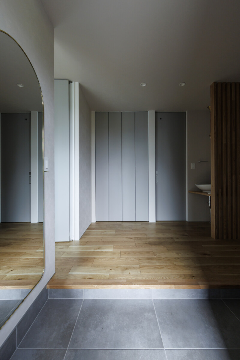 プライバシーを保ちつつ、自然とつながる2世帯住宅。 心地よく暮らすために設計された住まいです。 明るい吹き抜けのリビングや、木の温もりを感じるダイニング。 機能的な収納と断熱性に優れた構造が、快適で長く愛される暮らしを支え, 世代を超えて笑顔が紡がれます。